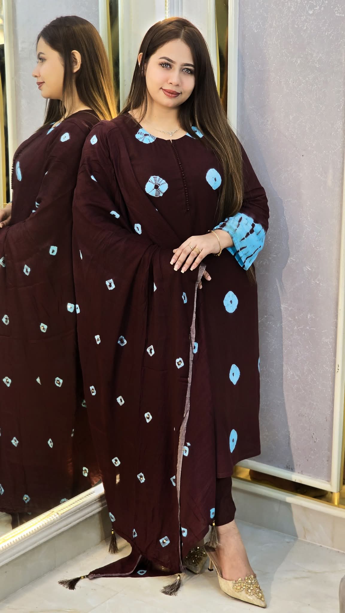 ভালোবাসার আরেক নাম বাটিক থ্রি পিস এত সফট ও কম্ফোটেবল তার সাথে থাকবে কুমিল্লার বিখ্যাত টাই ডাই করা।